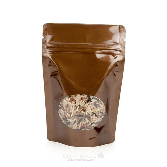 Buste doypack color bronzo con finestra ovale 10x6x15cm | 57 grammi (100 pezzi) [ZBGMO2BZ]