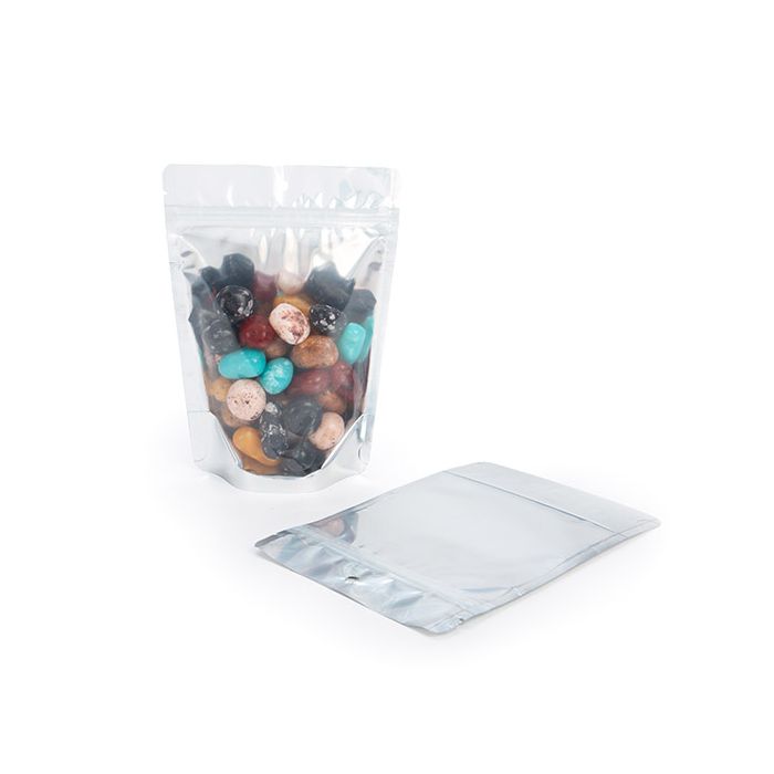 Il nostro ZBGW46H Bianco Stand Up Zipper Pouch non si ferma alla sua incRossoibile funzionalità. Misurato a 12 x 7,5 x 18,5 cm, questo sacchetto è progettato con un retro bianco, interno argento e fronte trasparente per mostrare il tuo prodotto. Il sacchetto ha dimensioni interne di 10,2 x 5,7 x 14,9 cm e contiene 3-4 once/85-114 grammi (sulla base di chicchi di caffè interi). Confeziona caffè, caramelle, sale marino, spezie, snack e vitamine.