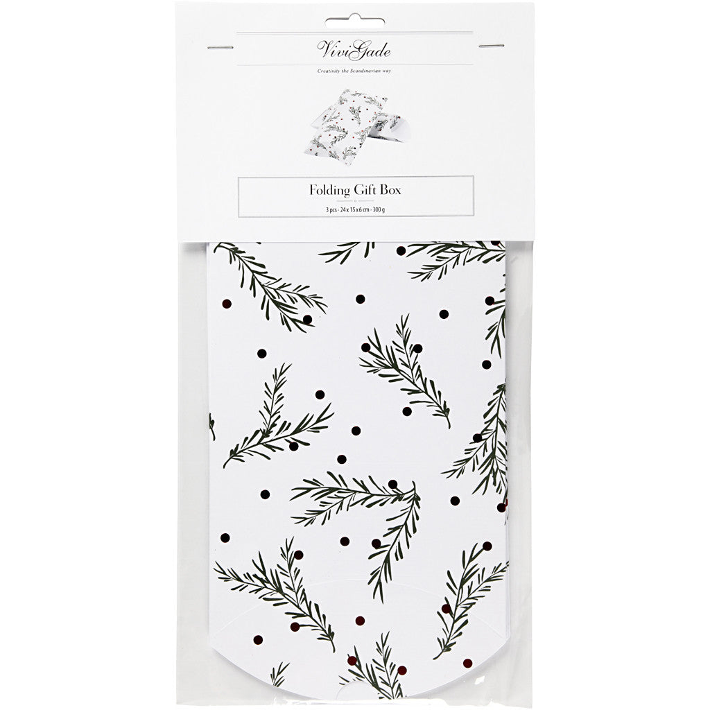 Scatoletta, rami d'abete con sfere natalizie, misura 18x15x6 cm, 300 g, verde, rosso metallico, bianco, 3 pz/ 1 conf. [HOB-25357]