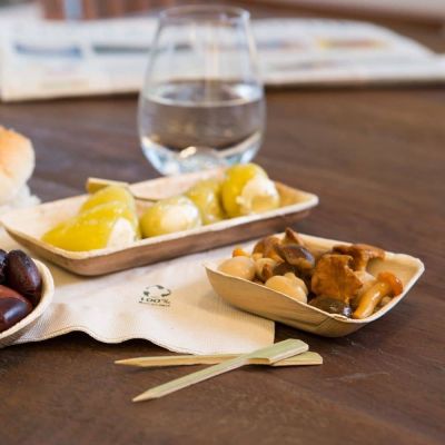 I prodotti in foglia di palma possono ammorbidirsi con il tempo, per questo motivo si consiglia di utilizzarli solo per il consumo immediato e di non conservare gli alimenti per un periodo di tempo più lungo.
