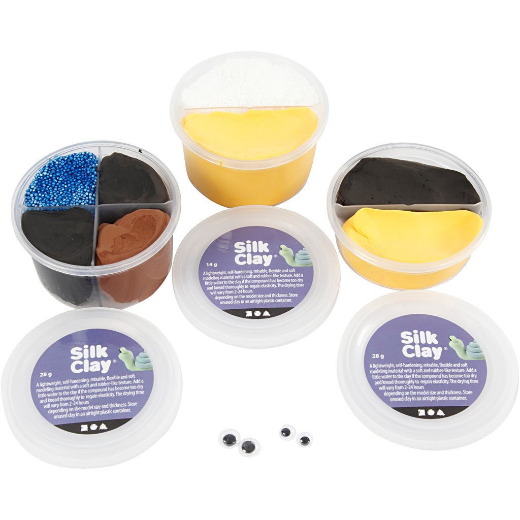 Kit di materiali per modellare le marionette da dito Shaun e Bitzer di Shaun Vita da Pecora in Silk Clay® e Foam Clay®. Guida inclusa