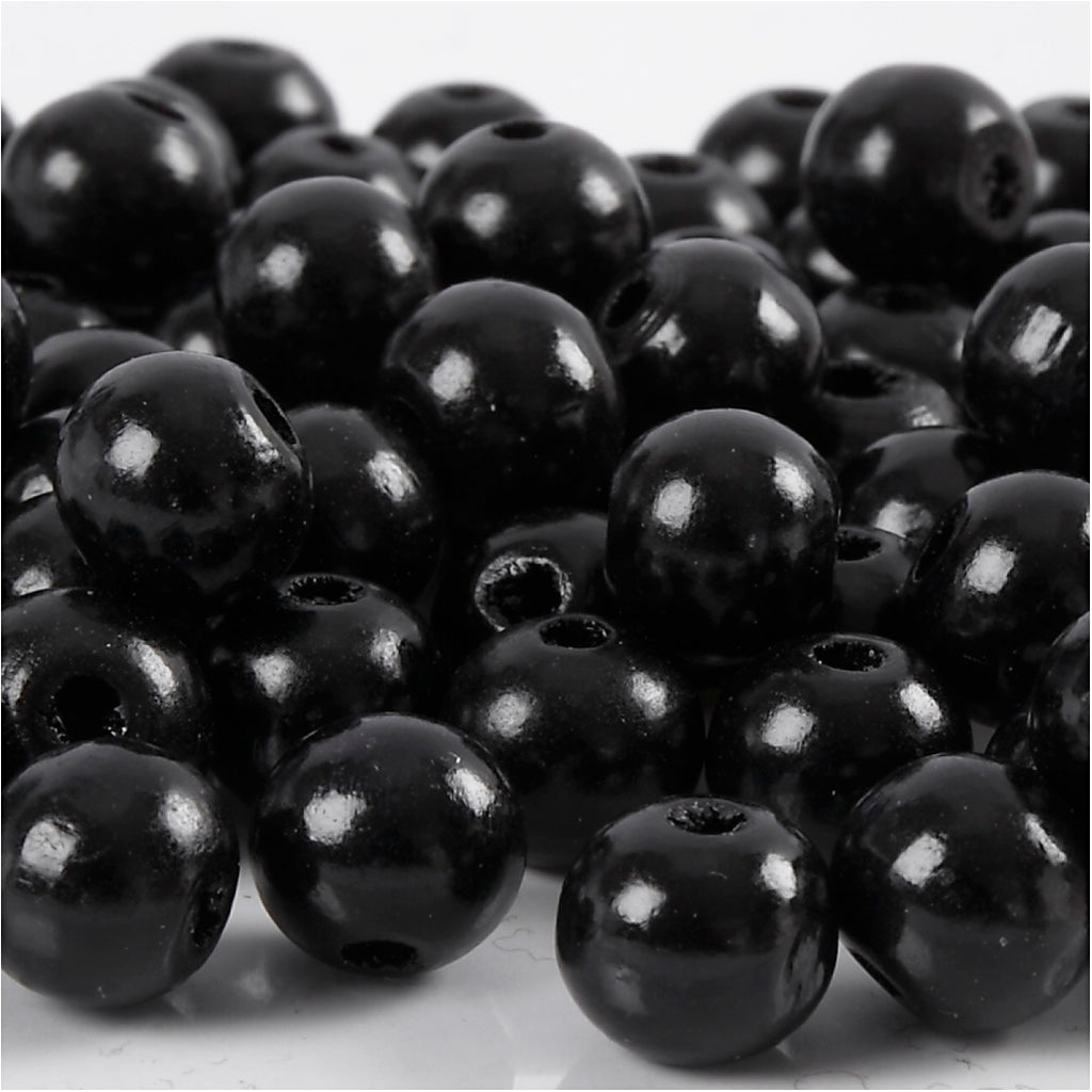Perline in Legno, diam 10 mm, misura buco 3 mm, ca. 70 pz, nero, 20 g/ 1 conf. [HOB-570595]