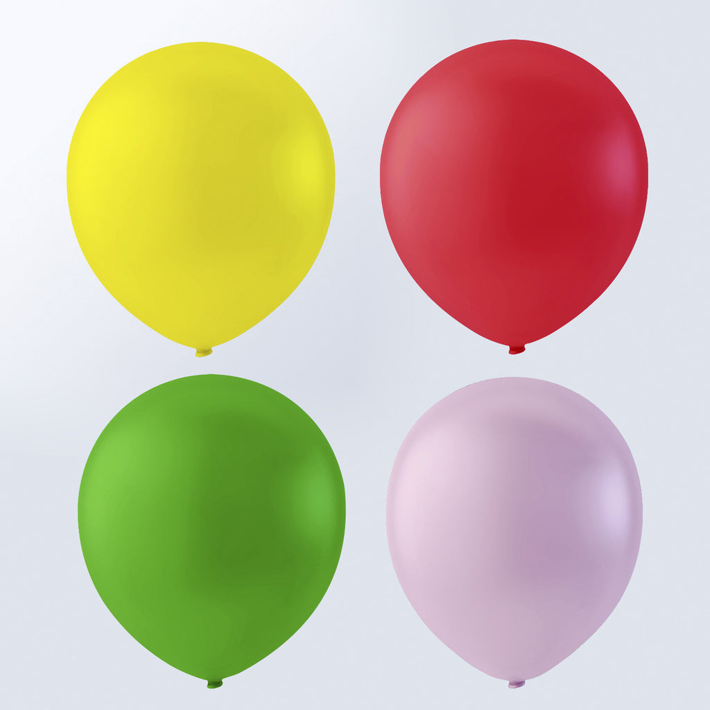 Palloncini rotondi di gomma naturale a tinta unita. Adatti per elio, tempo di gonfiatura circa 4 ore