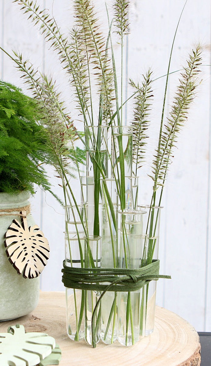 Provette in vetro cristallino, con bordo piatto per essere appese facilmente. Set di 12 pezzi.