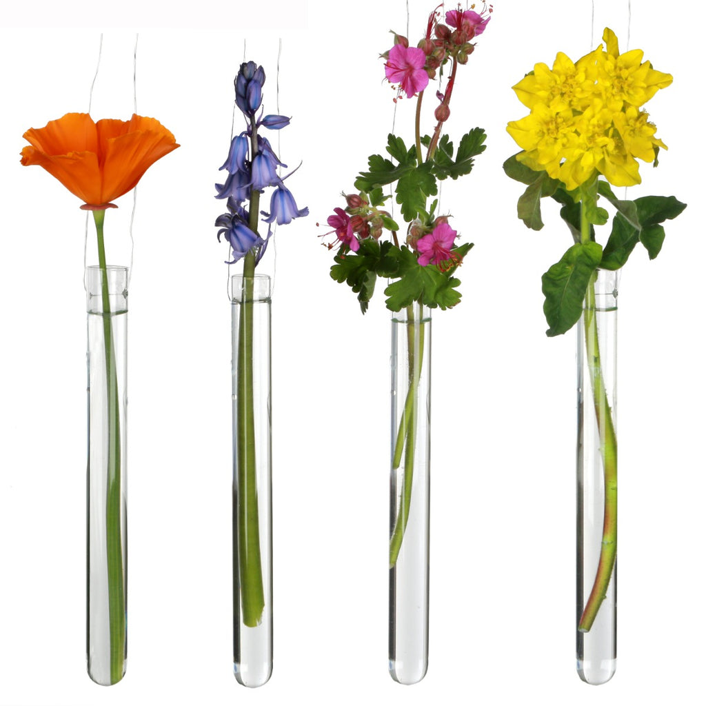 Provette di vetro cristallino, con due fori per appenderle facilmente. Set di 12 pezzi.