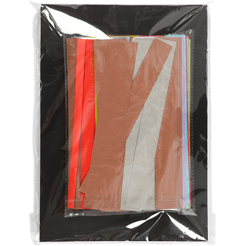 Set classe con telai a trame in cartone robusto bianco e nero e strisce intrecciate in carta stampata di 2 colori, in tante diverse tonalità chiare e larghezze variabili. Contenuto: 50 telai per tessitura e 960 strisce a doppia stampa in 4 larghezze e 20 colori.