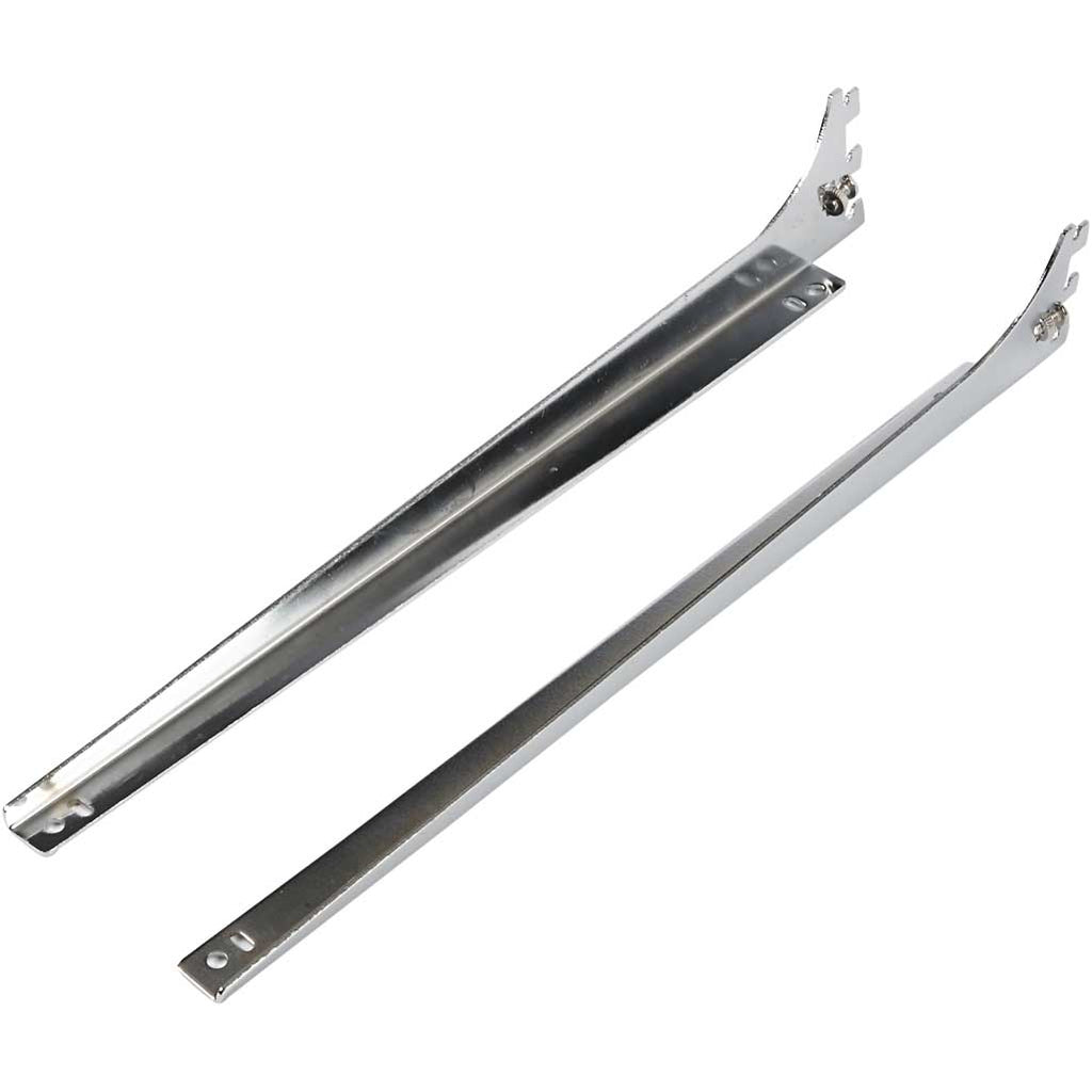 Supporti per mensole con cromatura lucida, adatti per fissare dei binari al muro con viti di bloccaggio. Pacco con 5 pezzi di destra, e 5 pezzi di sinistra