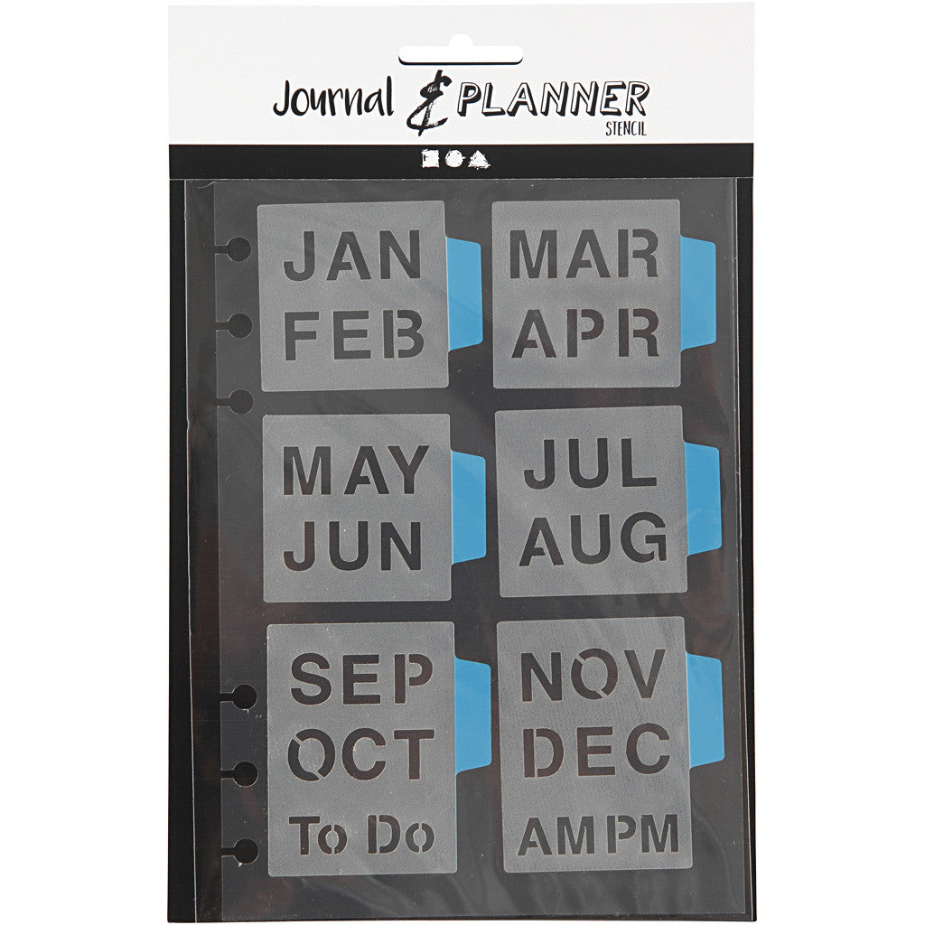Stencil autoadesivo in plastica a motivi, non permanente, con varie forme e fantasie adatte al bullet journal. Lo riceverai su acrilico con fori per poterlo inserire e adattare al planner art.num. 192648-651. Dopo l'uso lavare immediatamente in acqua tiepida
