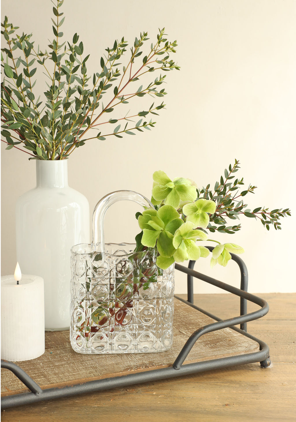 Vaso da fiori in vetro a forma di borsa
