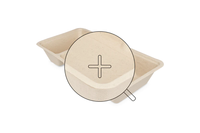 Questi vassoi sono completamente privi di plastica e quindi anche rispettosi dell'ambiente. Con le dimensioni di 8,5x3x16 cm, questi vassoi sono adatti per porzioni più piccole di patatine fritte o snack. Il contenitore ha uno scomparto per la salsa separato in modo da poter affondare l'appartamento della salsa.
